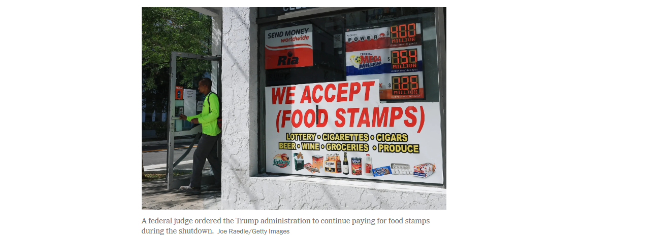 人们仍然越来越担忧,美国关门将对依赖联邦食物布施的美国人发生间接影响。